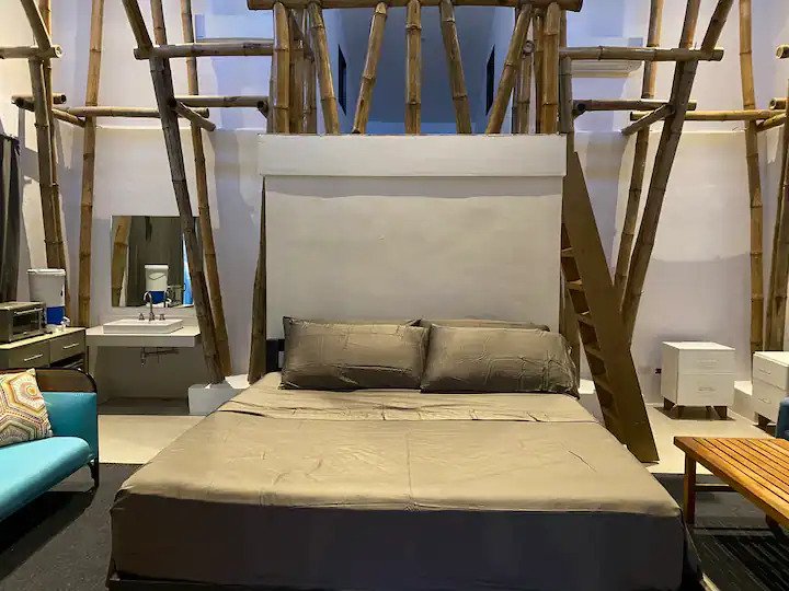 Nestled in the highlands of Antipolo, Rizal is a three-hectare farm where you can go off the grid and relish the beauty of nature. Usually, going off the grid means you’ll have to try roughing it out up in the mountains, where you’ll have to carry and set up your own camping equipment, but these casitas offer a more comfortable experience. Tucked within the grounds of this lush property are two stylish bamboo casitas where you can forget about the noises of the city.