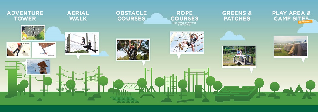 - Infinity Package (PHP1,300, requires advanced booking): Entrance, Zipline, Free Fall, Rappel Wall, Climbing Wall, Aerial Walk, Obstacle Couse, Initiatives, and High Ropes