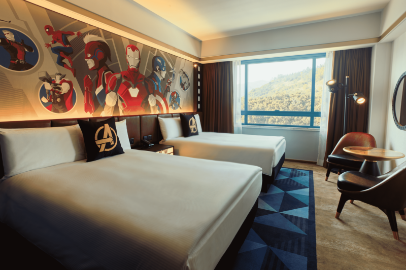 Starting from August 9, guests can emerge from the real world into the Marvel-inspired space with the brand-new Marvel-themed guest room at Disney’s Hollywood Hotel. As soon as you enter, you will be greeted by a stylized depiction of a Quinjet from “The Avengers” film series soaring high above Stark Tower, and guided your focus toward the Marvel Super Heroes-themed mural on the wall. Super Heroes, including Iron Man, Captain Marvel, Captain America, Spider Man, Thor, Hawkeye, Ant-Man, The Wasp, Black Widow and Hulk have assembled, evoking the epic stories and characters of the Marvel Cinematic Universe! Plan your Marvel-themed staycation as early as the new guest rooms available for early bird bookings from May 10.